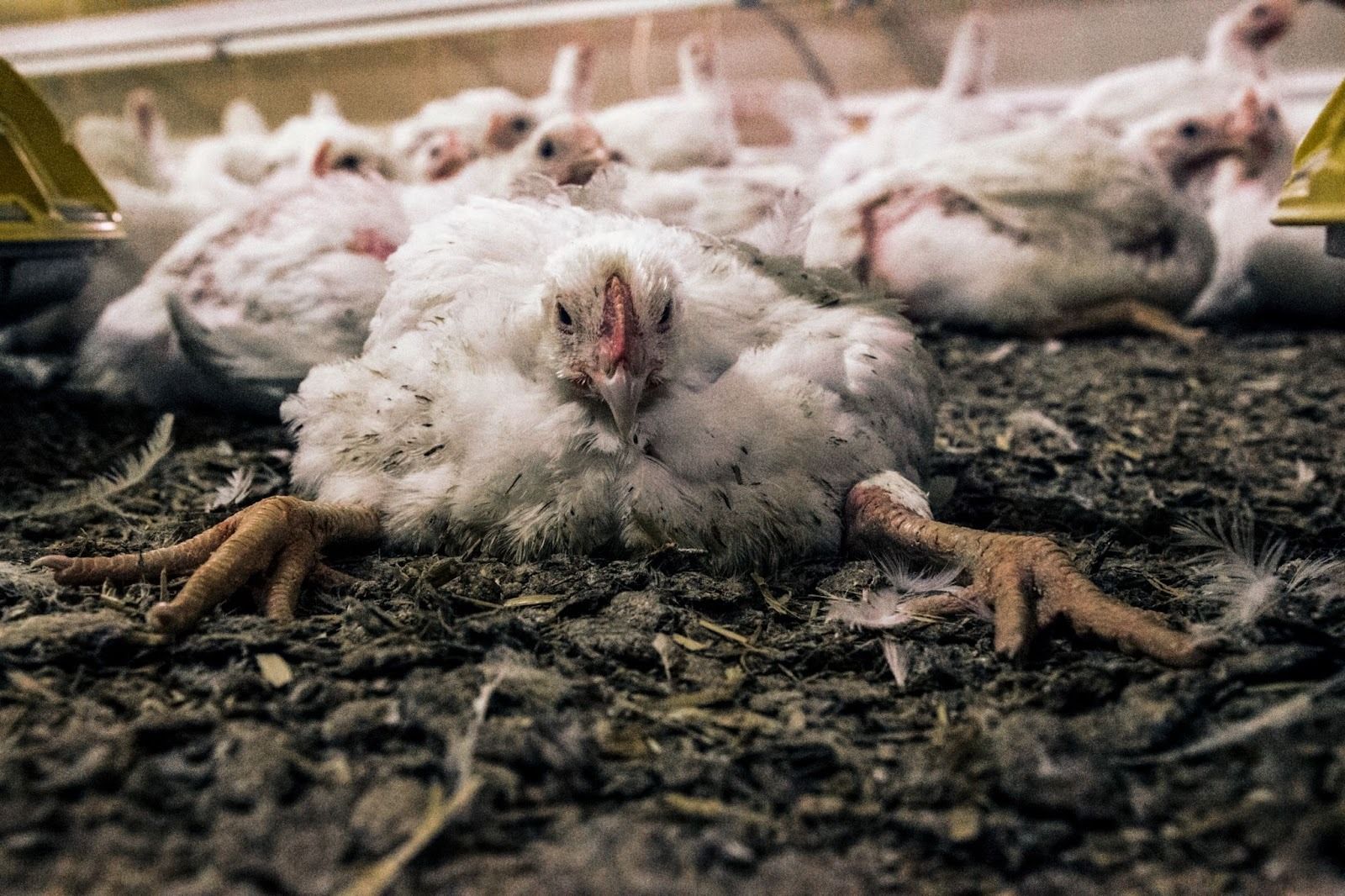 The chickens’ internal organs often fail to keep up with the body’s high oxygen demands. This leads to fluid buildup in the stomach. The birds feel a growing, distressing sense of breathlessness, eventually leading to a long and painful death.